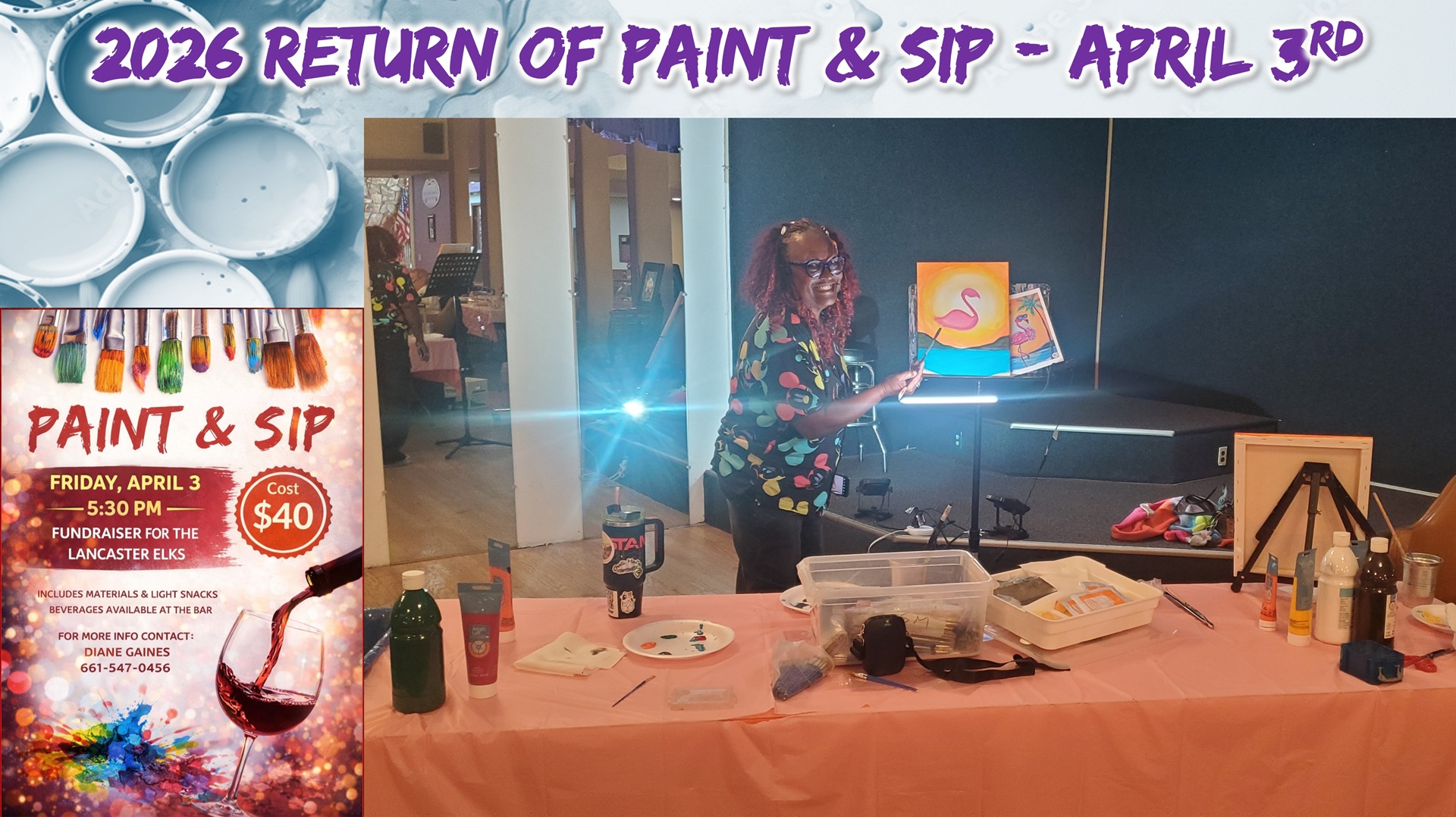 Paint & Sip April 1016 April 4, 2026 / Robin, Webmaster / 0 Comments Share this: Share on Facebook (Opens in new window) Facebook Share on X (Opens in new window) X Like this:Like Loading... Discover more from Lancaster Elks Lodge #1625 Subscribe to get the latest posts sent to your email. Type your email… Subscribe
